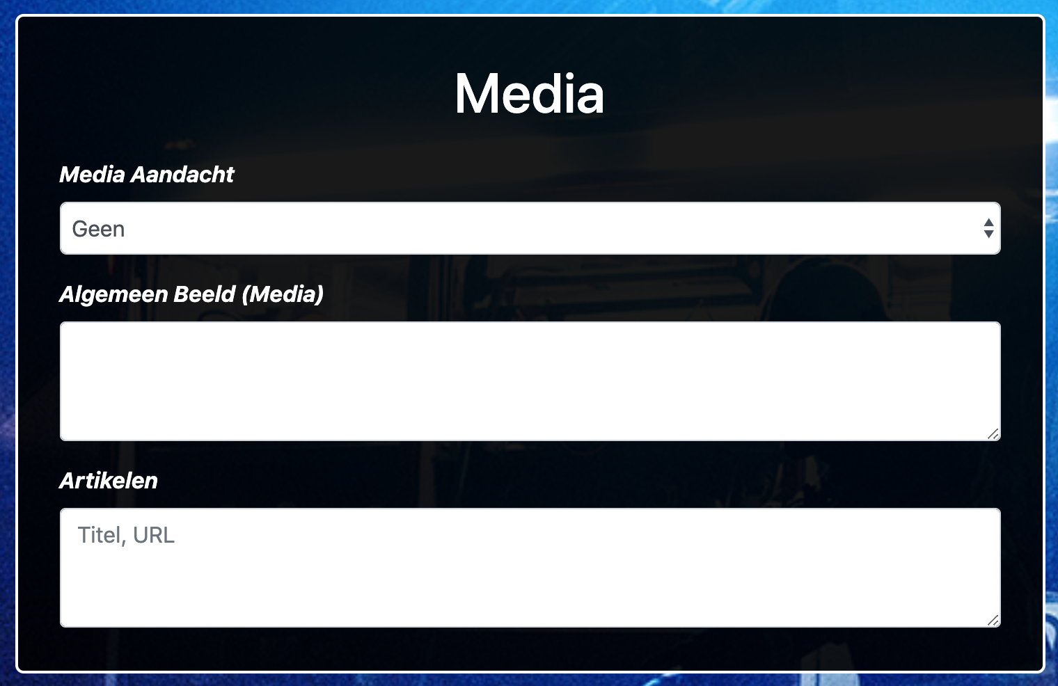 Vul ook het onderdeel “Media” in met de gegevens die je uit de analyse haalt. Ook hier tref je een drop-down menu aan om de media-aandacht te karakteriseren. Dit wordt een nette zin in het uiteindelijke rapport.