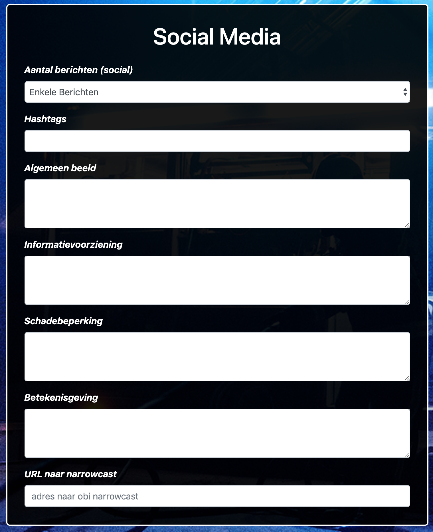 Bij sociale media tref je een dropdown-menu aan. Daarin staan verschillende mogelijkheden om het aantal berichten op sociale media te karakteriseren. In het uiteindelijk rapport wordt daar een standaardzin van gemaakt.